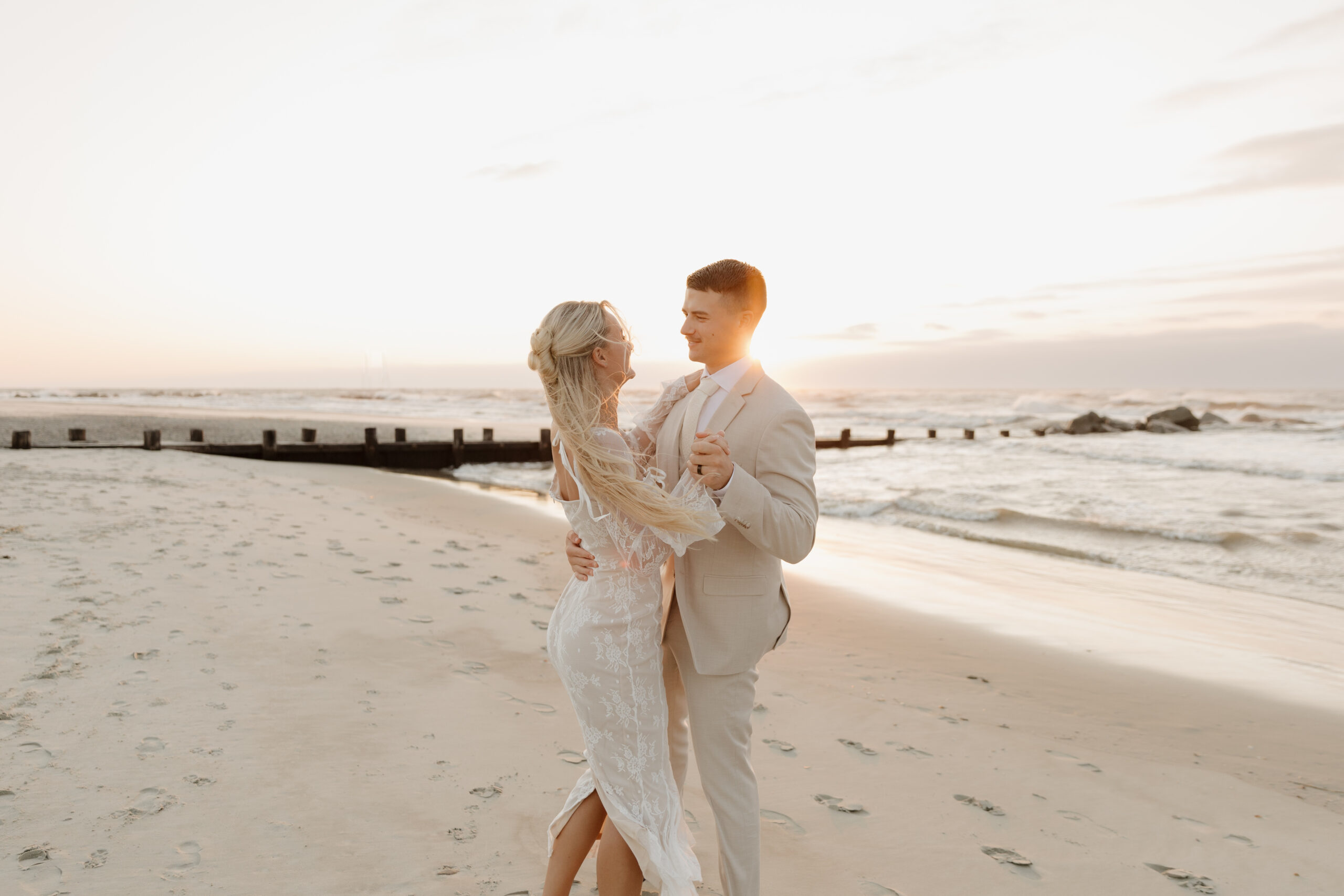 A sunrise elopement on Folly Beach in South Carolina for a couple who wanted a private moment between the two of them.